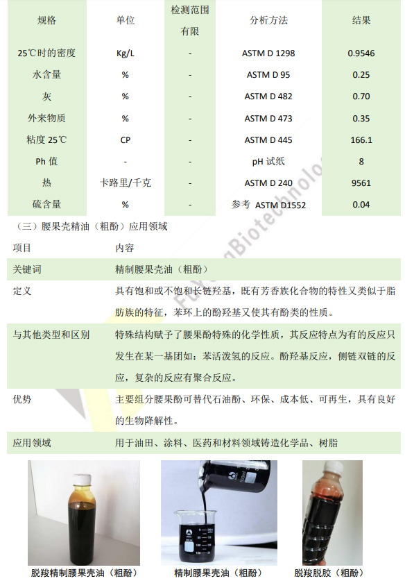 •成分:腰果壳液(CNSL)原产国:越南、柬埔寨、非洲、巴西、印尼